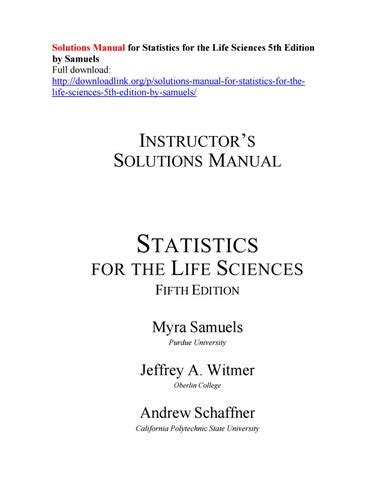 Read Online STATISTICS FOR THE LIFE SCIENCES SOLUTIONS MANUAL Doc BookBoon